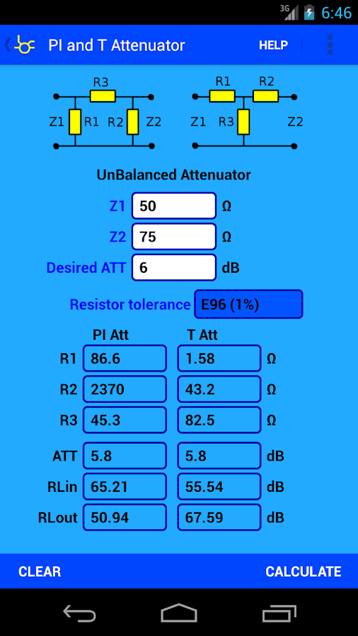 Удобно, когда можно "на коленке" прикинуть номиналы резисторов для аттенюатора, выбрать ближайшие номиналы из заданного ряда и сразу оценить погрешность по сравнению с "идеальными" значениями.
